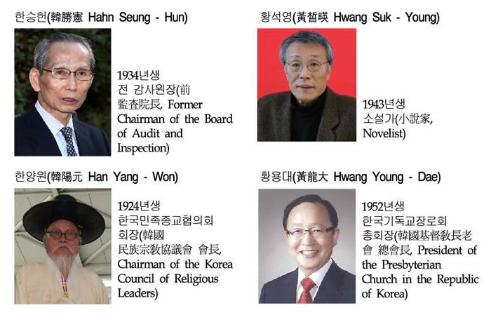 気がかりなこの韓国側委員会推薦人のメンツについては公式サイトに画像で紹介されていたものの、今後の資料として役立てる為に改めてその名簿をテキスト化して以下に掲載しておきたい。中には「え、この人が何で?」という顔ぶれもいるだろうが、それだけ韓国の事情も日本と同じで右も左もない翼賛体制が進行しているという事だ。それにまつろわぬ者は統合進歩党のように力ずくで潰される。