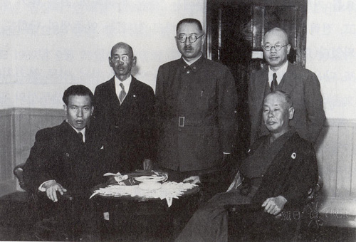 1939년, 이토 히로부미(伊藤博文)의 아들 이토 분키치(伊藤文吉 오른쪽)한테 가서 “아버지 테로 행위”를 사죄 하는 안준생(왼쪽).