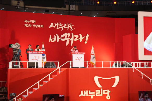 7.14に行われたセヌリ党全党大会の光景。バックに書かれているスロ-ガンは「セヌリを変えろ」と書かれている。