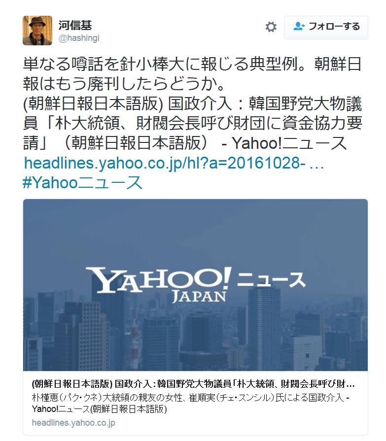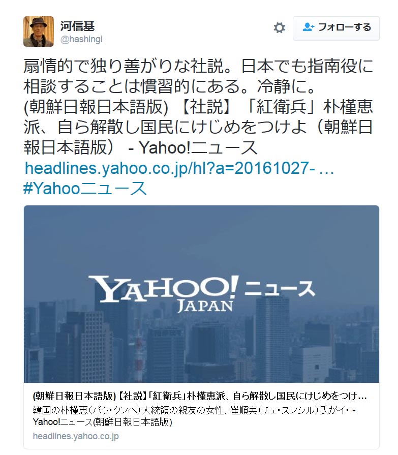 どっちに転んでも韓国の行く手には地獄しかないのではないでしょうか。「崔順実事件」で朴槿恵政権が風前の灯だからといって、楽観出来るような情勢では全くありません。